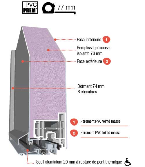 La conception de l’ouvrant monobloc permet d’obtenir des épaisseurs de panneaux plus importantes et donc d’atteindre des performances thermiques plus poussées. Ainsi, à modèle et matériau identiques, une porte d’entrée monobloc sera toujours plus performante thermiquement qu’une porte d’entrée à ouvrant traditionnel (dit parclosé).